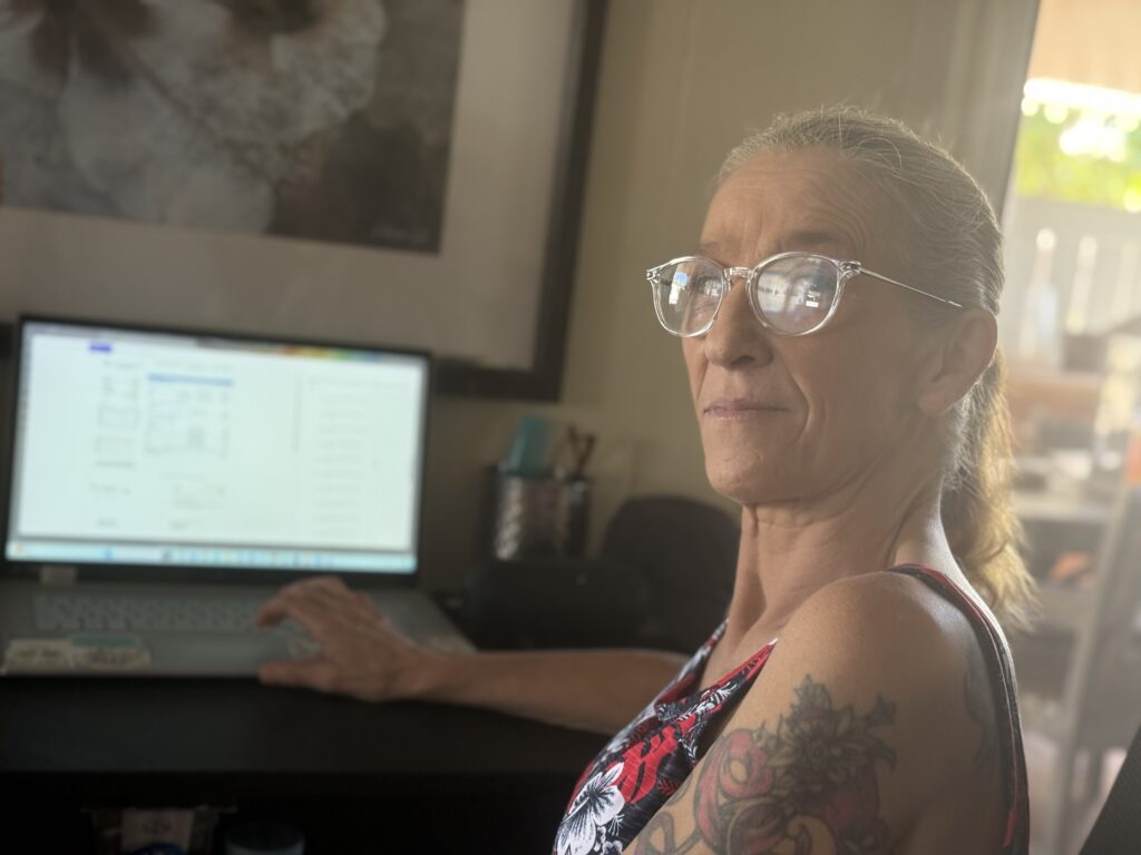 On a recent afternoon, her living room was dark except for sunlight streaming through jalousie windows and a sliding glass door; quiet except for the whir of a fan near her desk, the only artificial light a glowing laptop computer that displayed a recent electric bill.