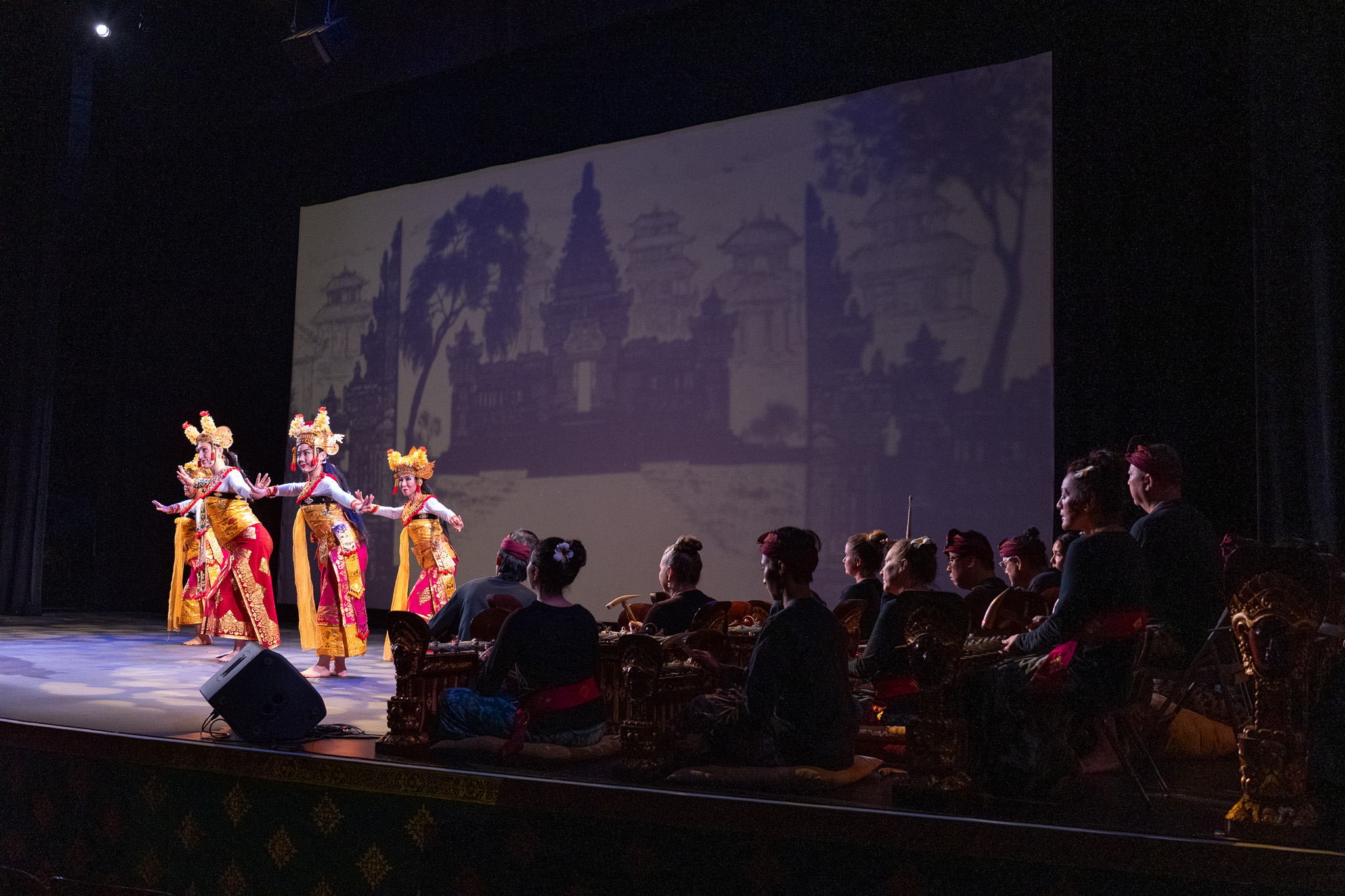 Using a large screen, intricate split-second set changes, lighting and timing create a movie-like feel that is as big a part of the production as the music of the gamelan ensemble and the cast.