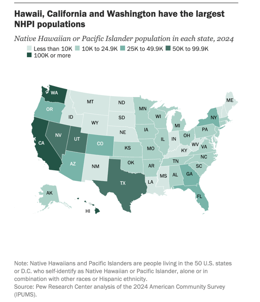 “About 1.7 million people in the U.S. are Native Hawaiian or Pacific Islander (NHPI), tracing their roots to Hawaii, Guam, Samoa or other Pacific Islands in Oceania,” the article says. “They make up 0.5% of all Americans and encompass a wide range of cultures, histories and communities.”